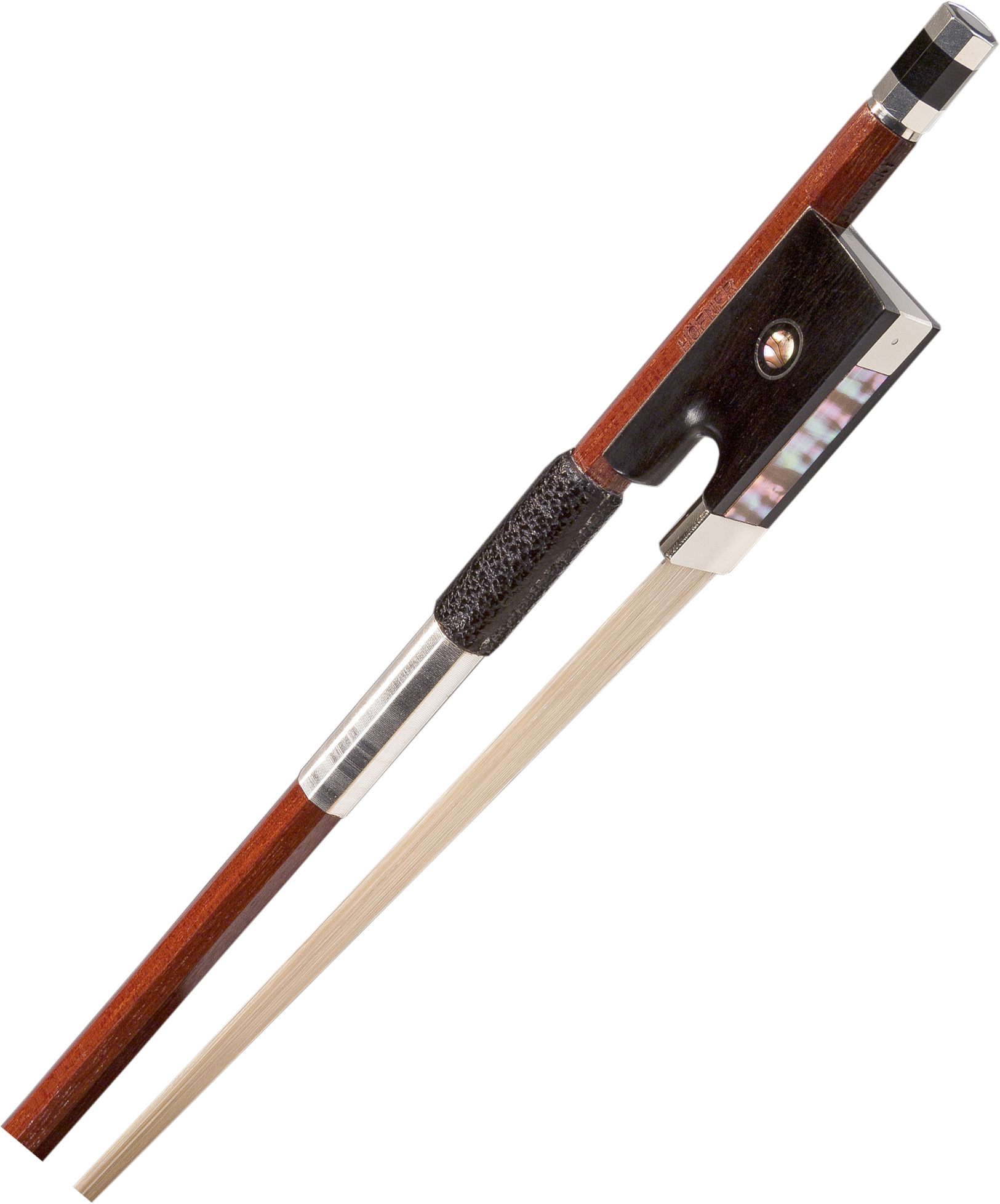 Hofner 7-13K Brazilwood Violin Bow High-quality Brazilwood, octagon stick, nickel-silver-mounted, fully mounted ebony frog with Parisian eye. Nappa leather lapping and wire winding. 4/4.